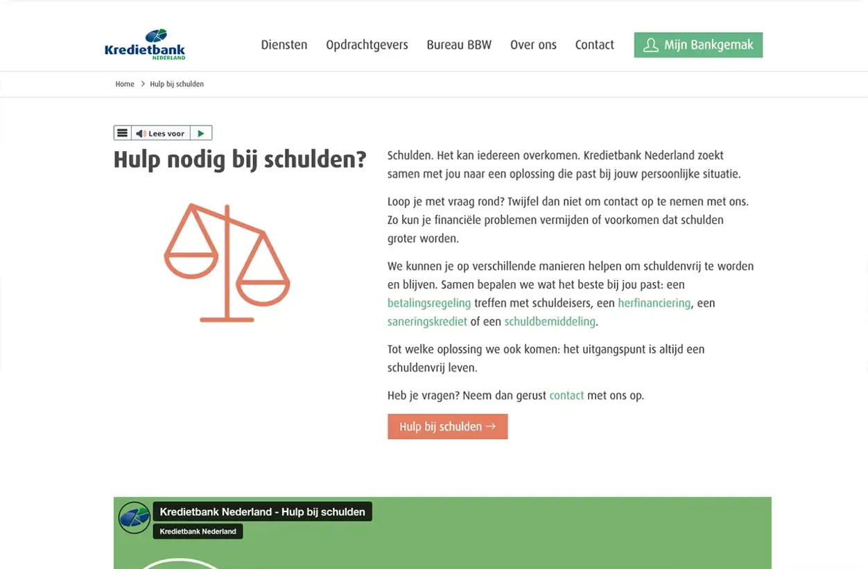Voor Stichting Kredietbank Nederland was een gebruiksvriendelijk en flexibel CMS essentieel, zodat medewerkers gemakkelijk zelf content kunnen beheren en formulieren kunnen aanpassen. Daarnaast waren maatwerk functionaliteiten en koppelingen met hun bestaande systemen gewenst om de primaire processen efficiënt te ondersteunen. Door deze oplossingen kunnen de medewerkers van Kredietbank Nederland optimaal werken met een op maat gemaakte en gebruiksvriendelijke websiteomgeving.