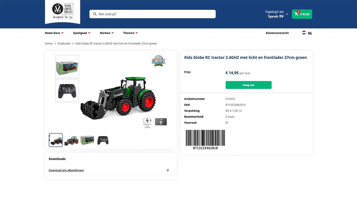 24/7 bestelmogelijkheid: klanten bestellen zelfstandig via de webshop, op elk device, in hun eigen taal.