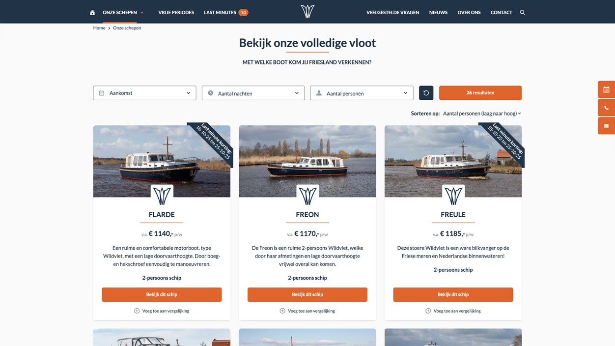 Boten vergelijken: bezoekers kunnen verschillende boten eenvoudig vergelijken