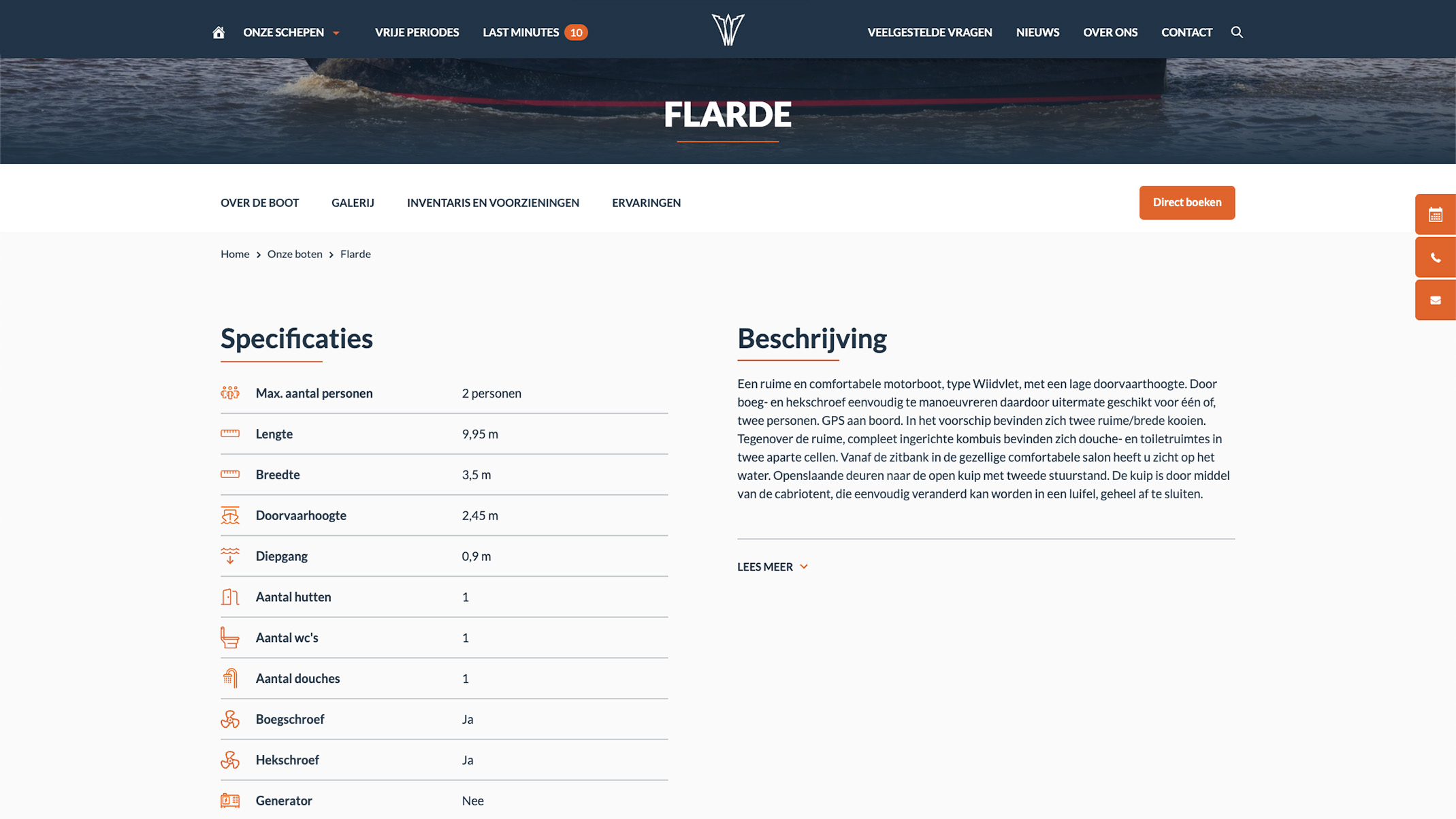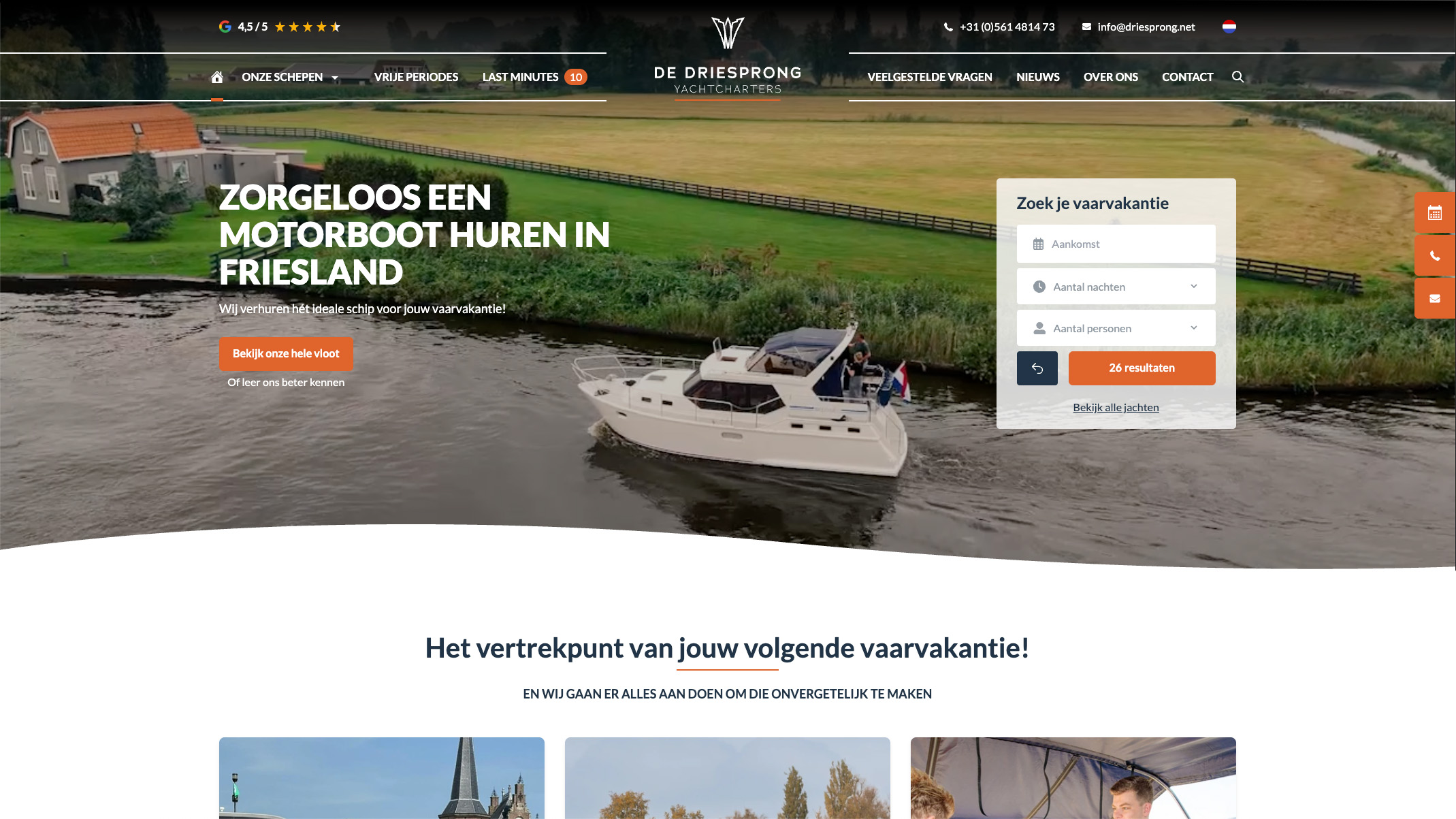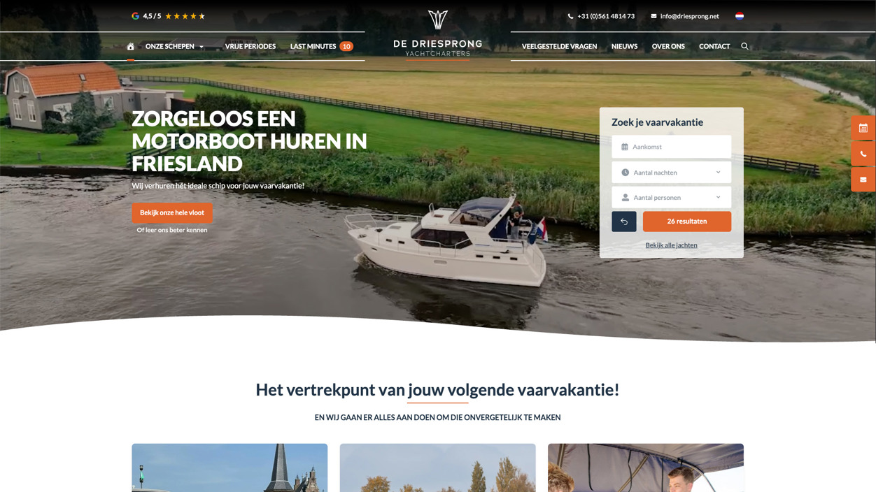 Effectieve website gericht op het genereren van boekingen voor de boten van De Driesprong Yachtcharters.