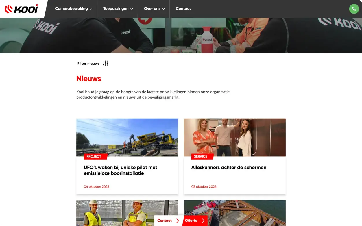 Integratie met klantportalen en software: Het veelzijdige Microsoft .NET Umbraco CMS biedt Kooi de mogelijkheid om eenvoudig klantportalen, apps en CRM- en ERP-software aan de website te koppelen.