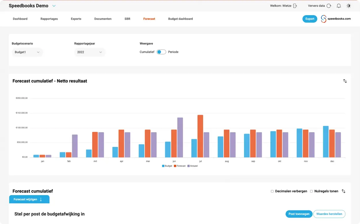 Krachtige rapportagefunctionaliteiten: Ondersteuning voor visuele rapportages, KPI-dashboards, consolidatie en scenario-analyses.