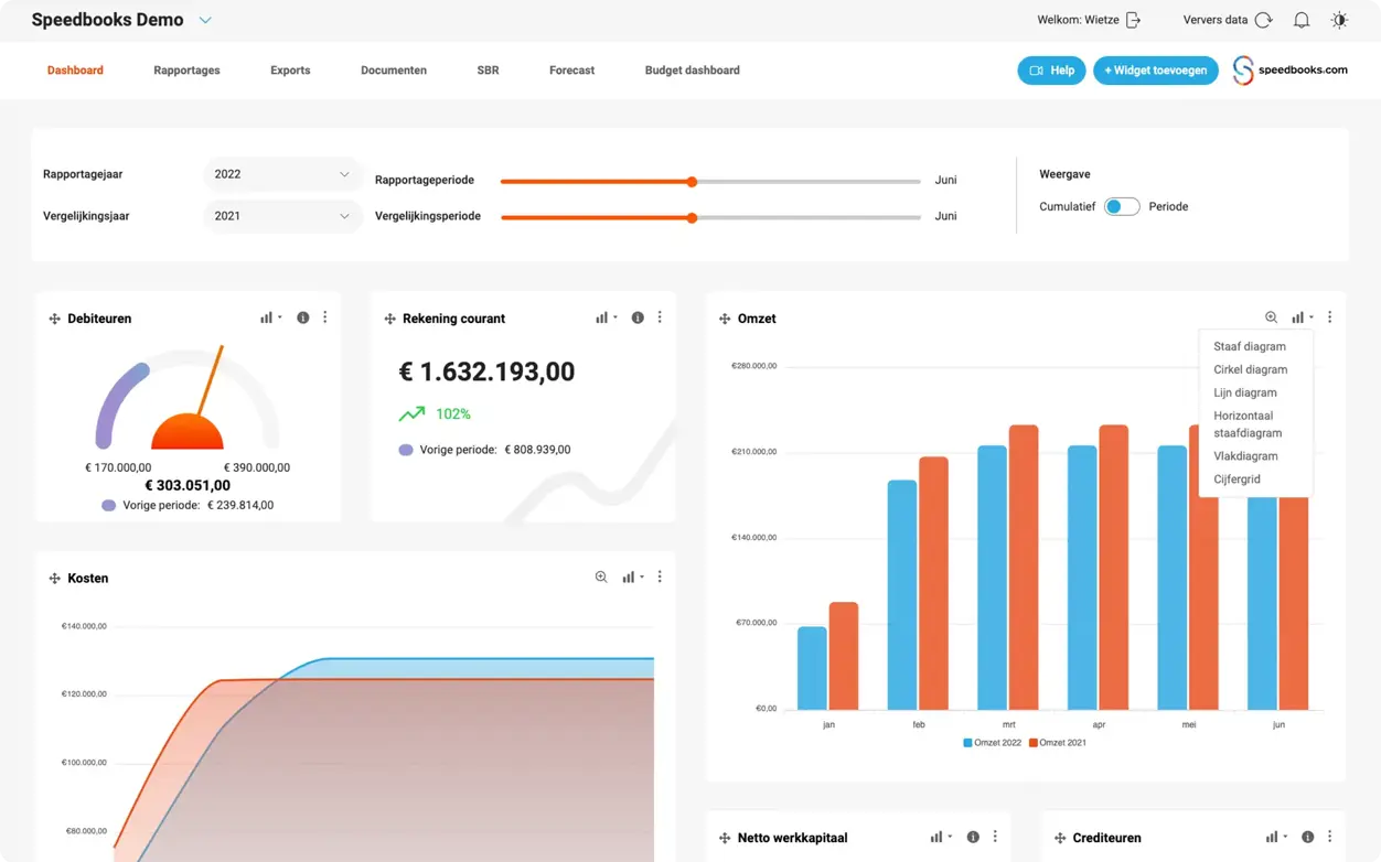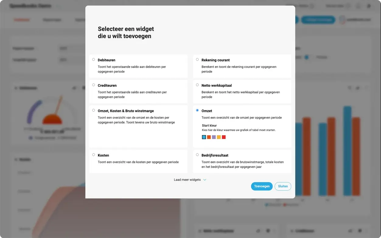 Realtime inzicht: Dashboards en widgets bieden een realtime visueel overzicht van financiële kerncijfers.