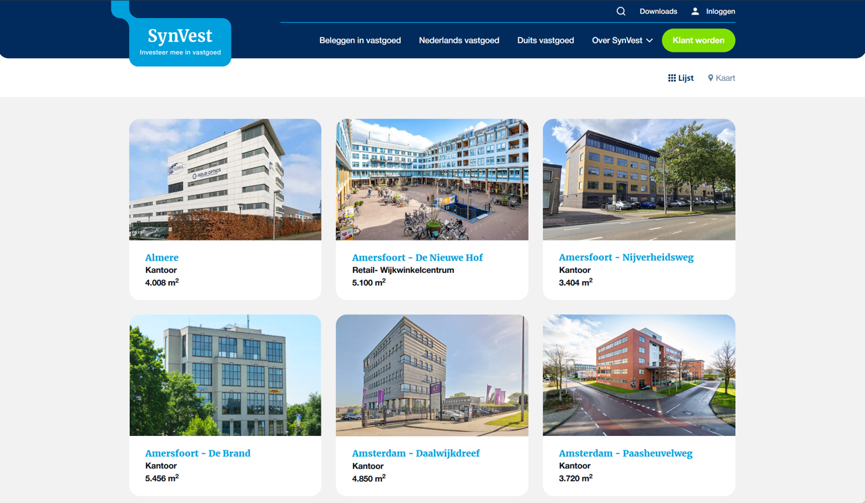 Een website waar alles samenkomt op het gebied van de Nederlandse en Duitse vastgoedportefeuille, informatie over het beleggen in vastgoed en leads direct naar het HubSpot CRM worden verzonden.